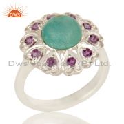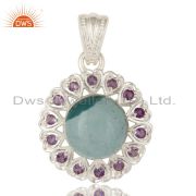 925 Sterling Silver Natural Turquoise And Amethyst Gemstone Dangle Earrings