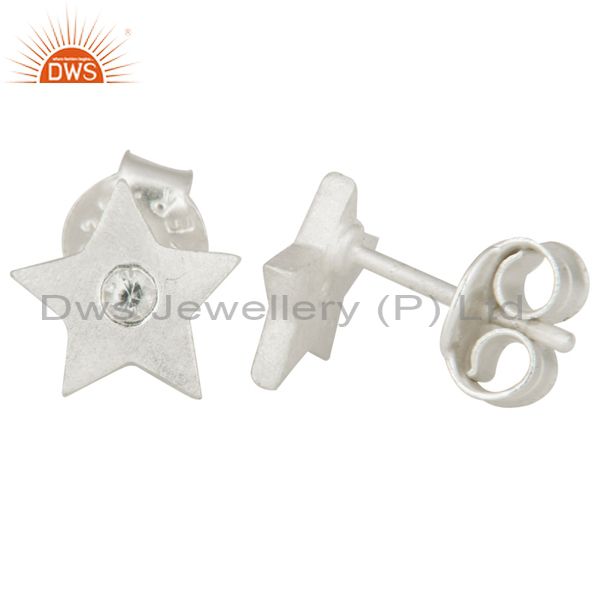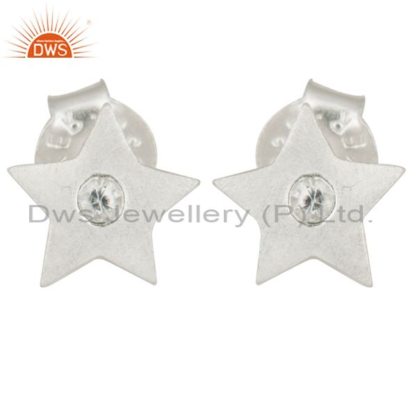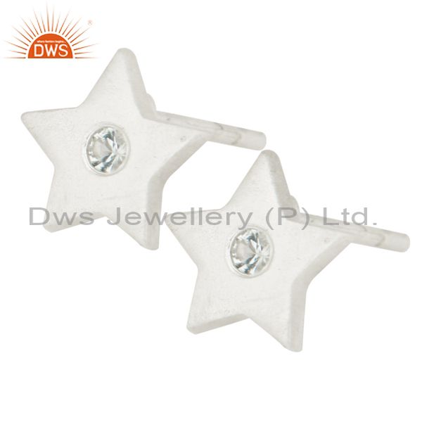 925 Sterling Silver Natural White Topaz Star Womens Stud Earrings