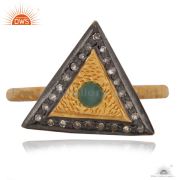 925 Sterling Silver Pave Diamond Emerald Beautiful Trillian Shape Stud Earring
