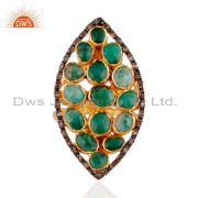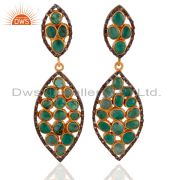 925 Sterling Silver Pave Diamond Natural Emerald Raw Gemstone Post Stud Earrings