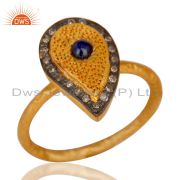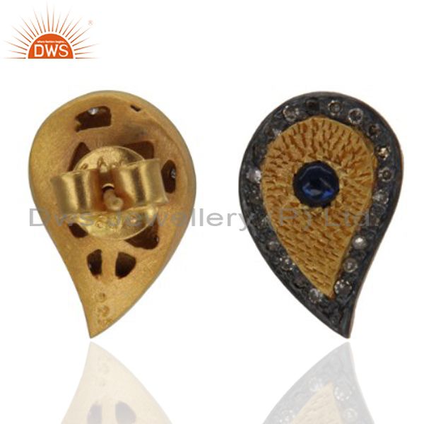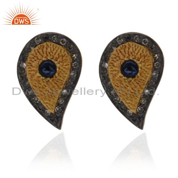 925 Sterling Silver Pave Diamond Sapphire Gemstone Teardrop Stud Earrings