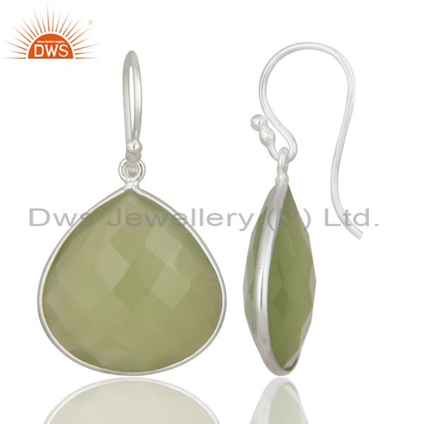 925 Sterling Silver Prehnite Chalcedony Gemstone Bezel Set Teardrop Earrings