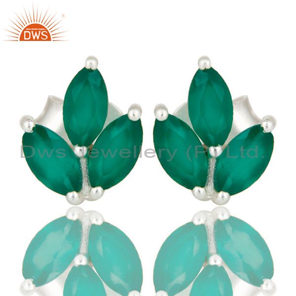925 Sterling Silver Prong Set Green Onyx Gemstone Stud Earrings