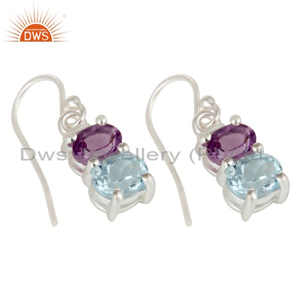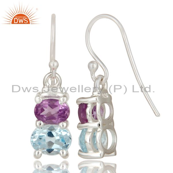 925 Sterling Silver Purple Amethyst And Blue Topaz Gemstone Dangle Earrings