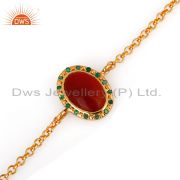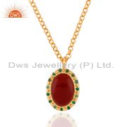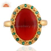 925 Sterling Silver Red Onyx 18K Gold Plated Emerald Gemstone Dangle Earrings