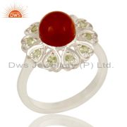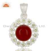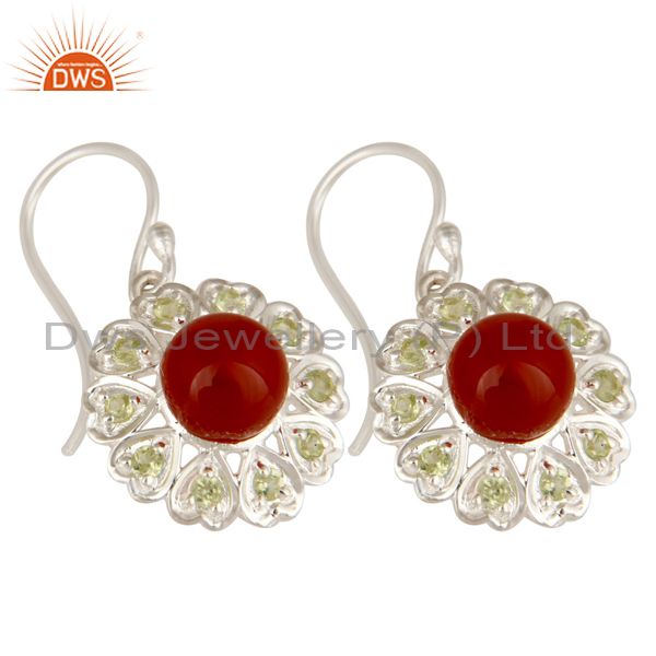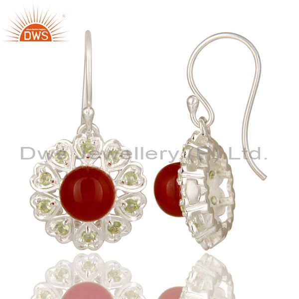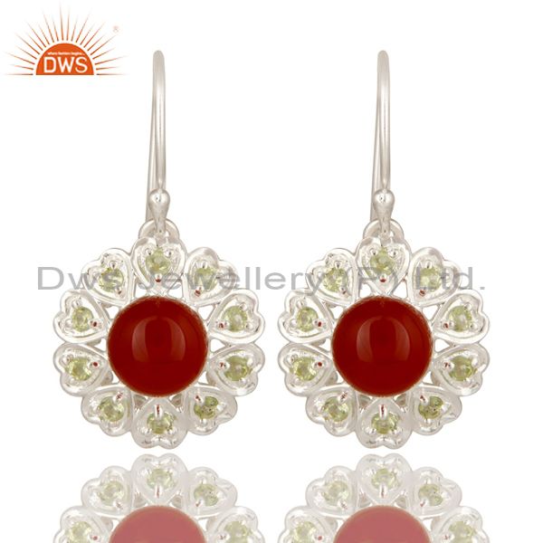 925 Sterling Silver Red Onyx And Peridot Gemstone Designer Heart Earrings