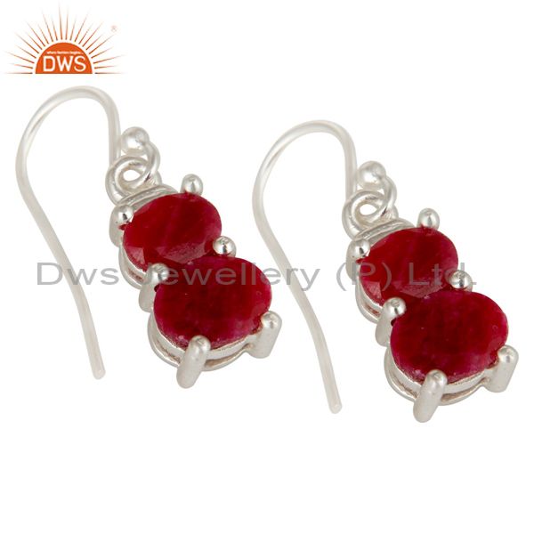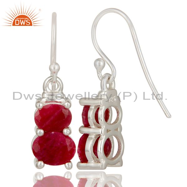 925 Sterling Silver Red Ruby Corundum Gemstone Dangle Earrings