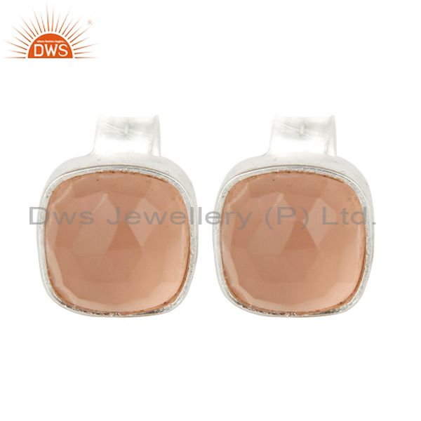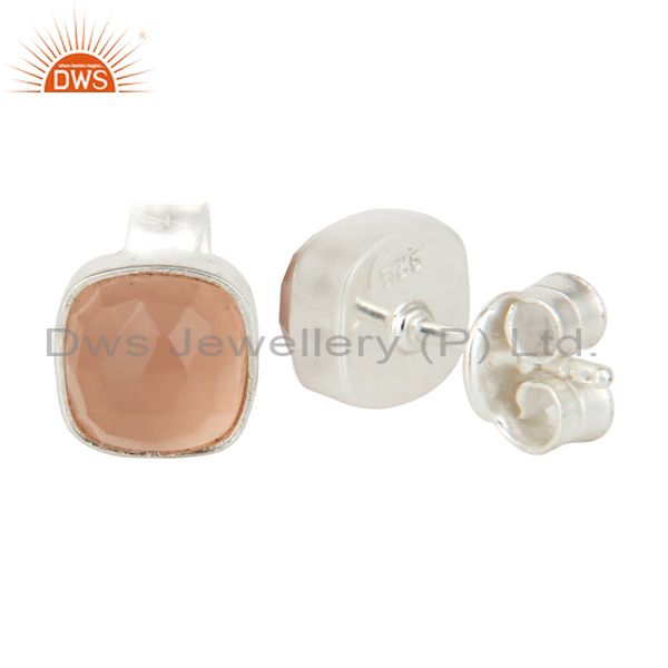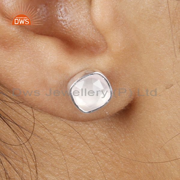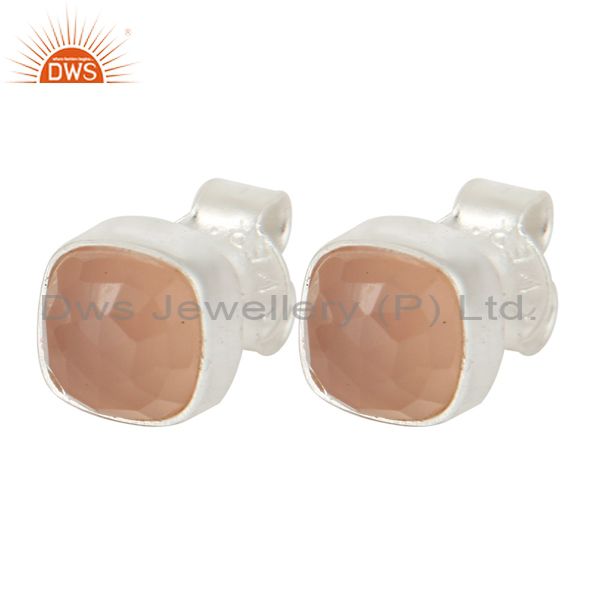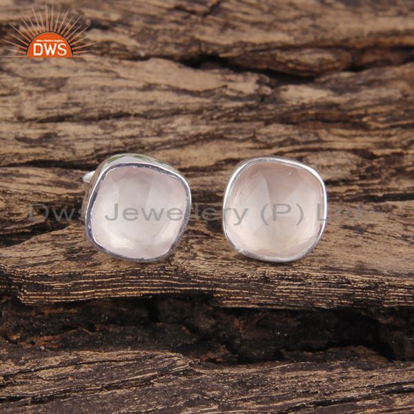 925 Sterling Silver Rose Chalcedony Womens Fashion Cushion Stud Earrings