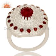 925 Sterling Silver Ruby And Garnet Gemstone Dangle Earrings With White Topaz