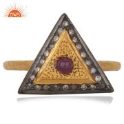 925 Sterling Silver Ruby Pave Diamond Beautiful Trillian Shape Stud Earring