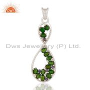 925 Sterling Silver Russian Chrome Diopside And Iolite Infinity Dangle Earrings