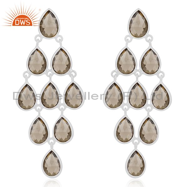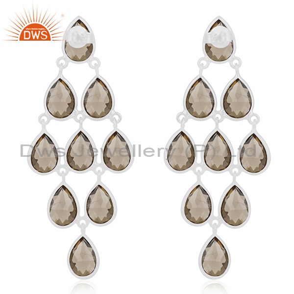 92.5 Sterling Silver Smoky Quartz Gemstone Dangle Earring Wholesale