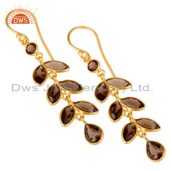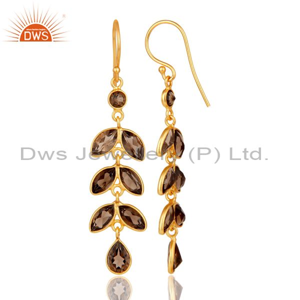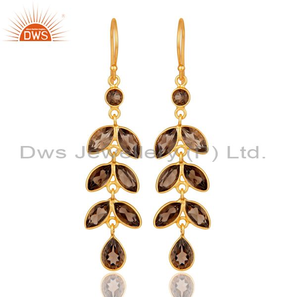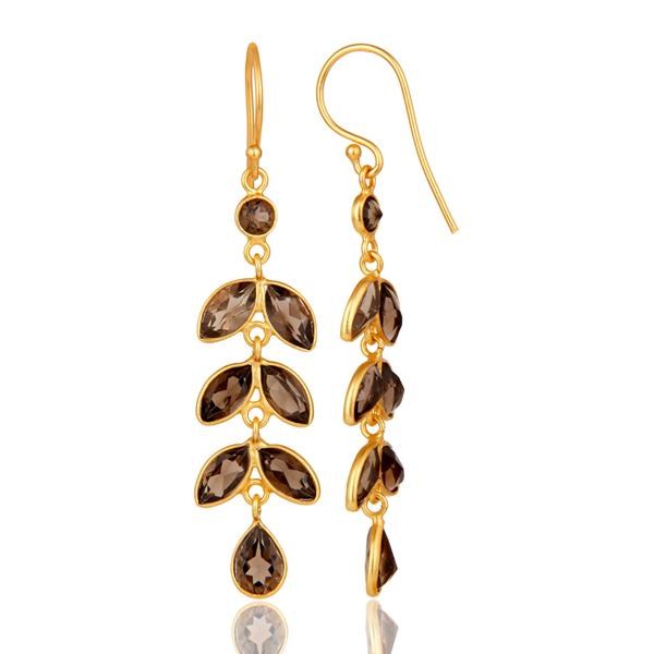 925 Sterling Silver Smoky Quartz Gemstone Leaf Earrings With Gold Plated