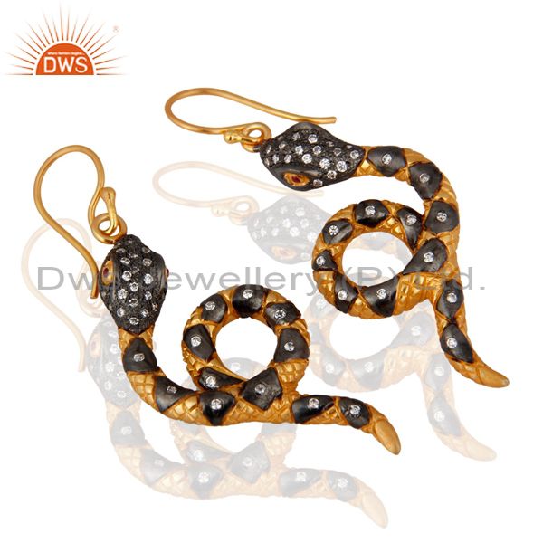 925 Sterling Silver Snake Design Hook Earrings Cz 18K Gold Plated Jewelry
