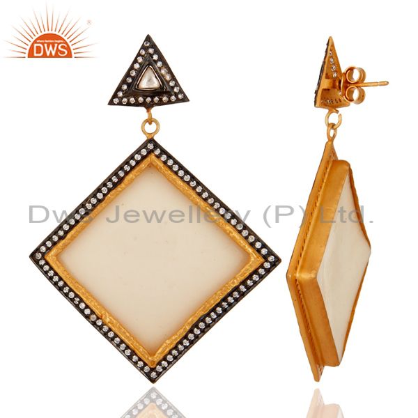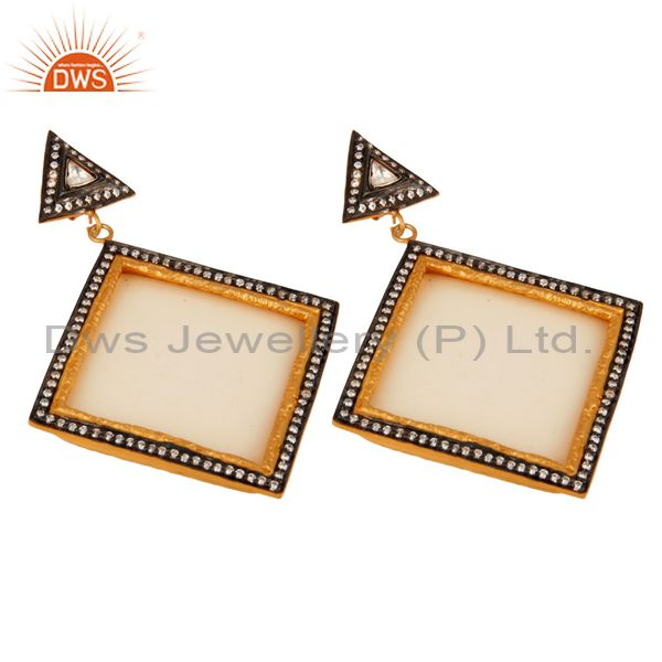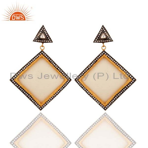 925 Sterling Silver White Cubic Zirconia Vintage Look Bakelite Fashion Earrings