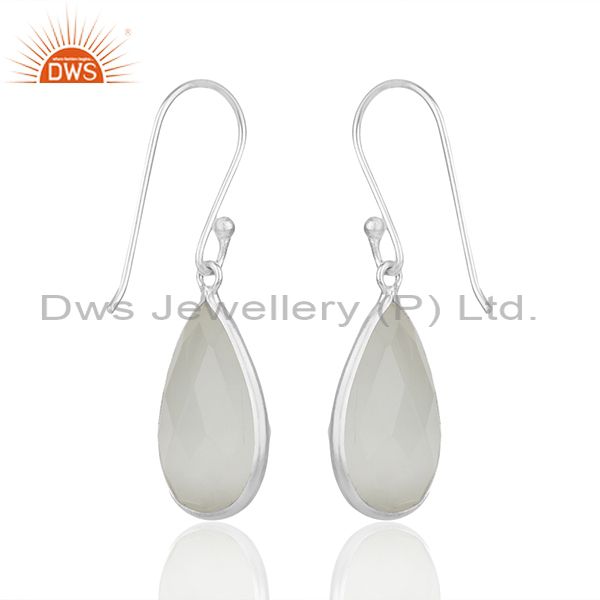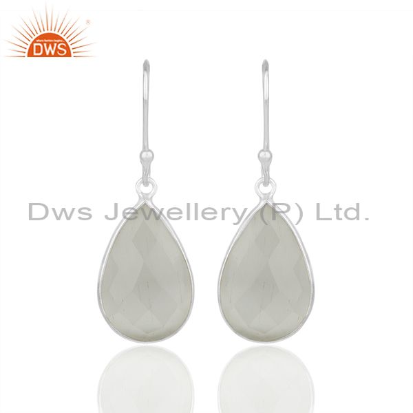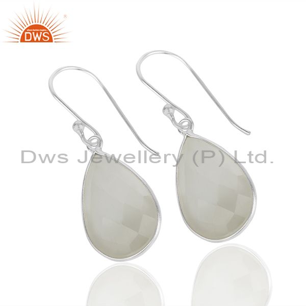 925 Sterling Silver White Moonstone Faceted Gemstone Bezel Set Earrings