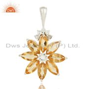 925 Sterling Silver White Topaz & Citrine Marquise Cut Gemstone Flower Earrings