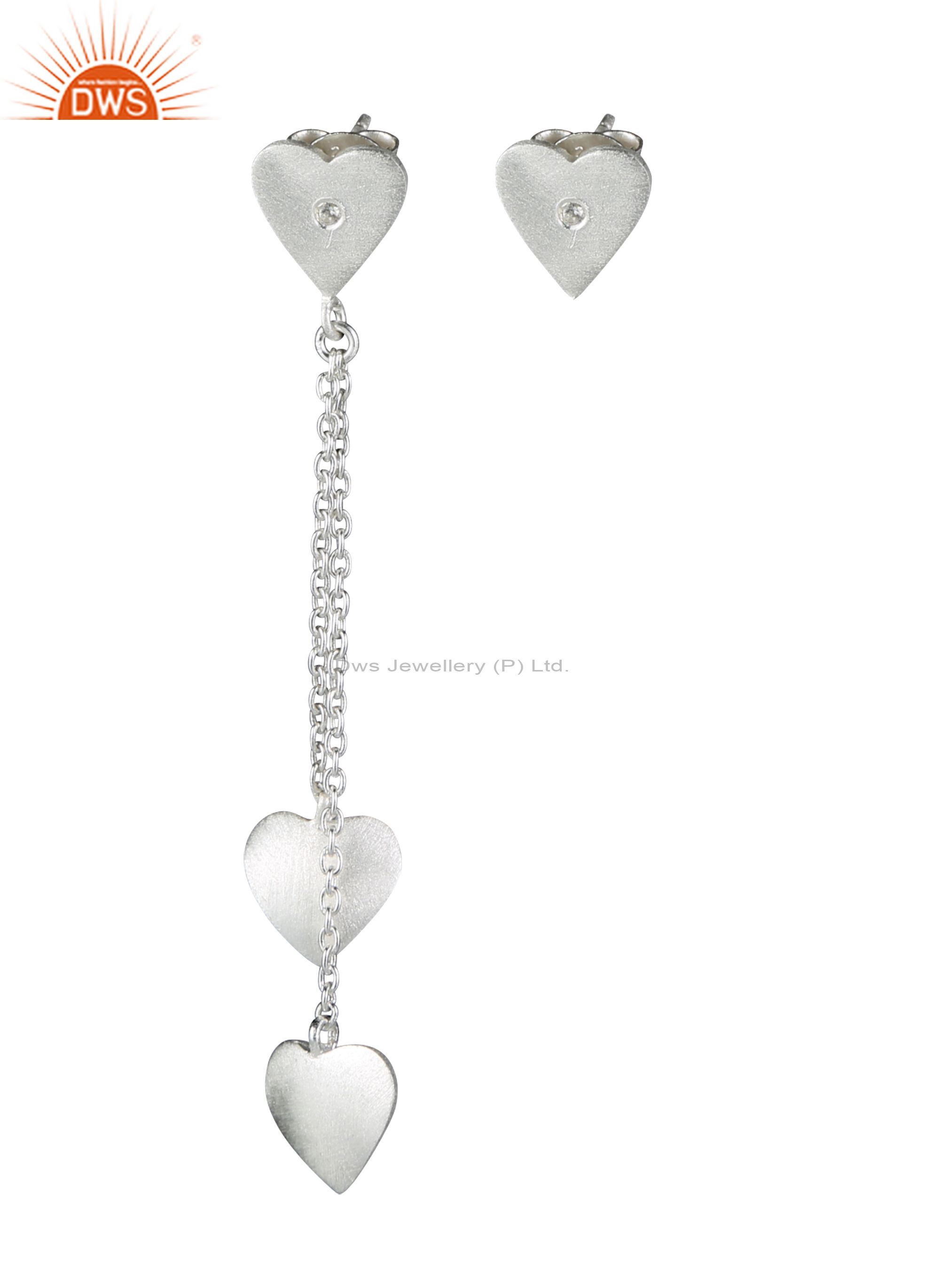 925 Sterling Silver White Topaz Link Chain Double Heart Dangle Stud Earrings