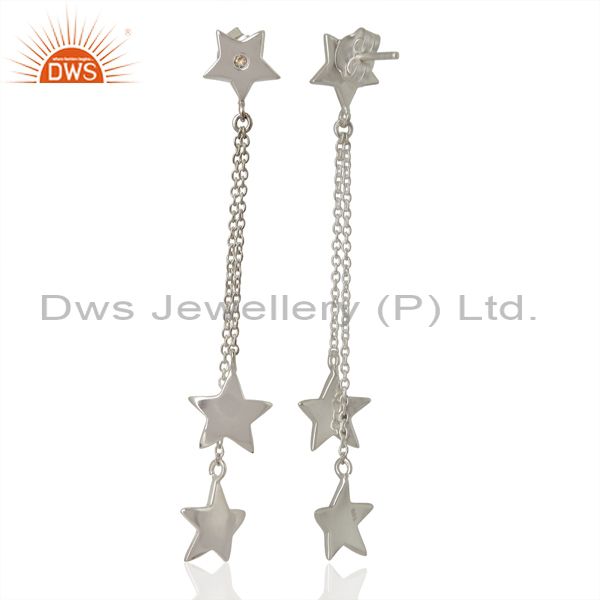 925 Sterling Silver White Topaz Star Chain Dangle Earrings
