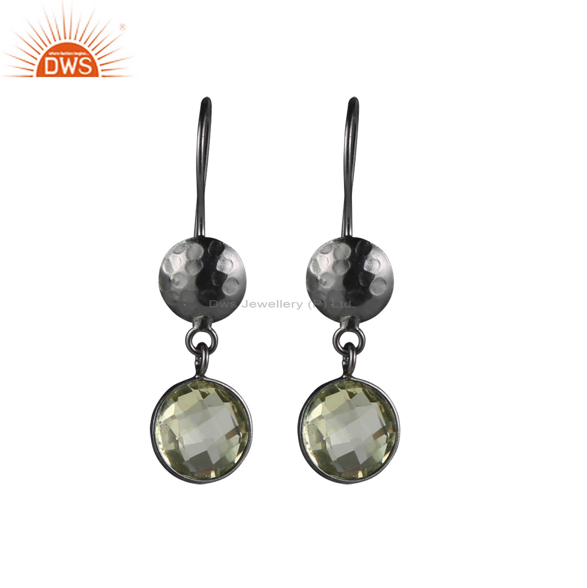 925 Sterling Silver With Oxidized Lemon Topaz Gemstone Bezel Set Dangle Earrings