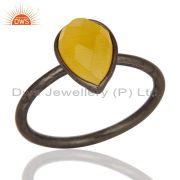 925 Sterling Silver With Oxidized Yellow Moonstone Bezel Set Dangle Earrings