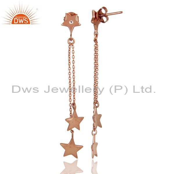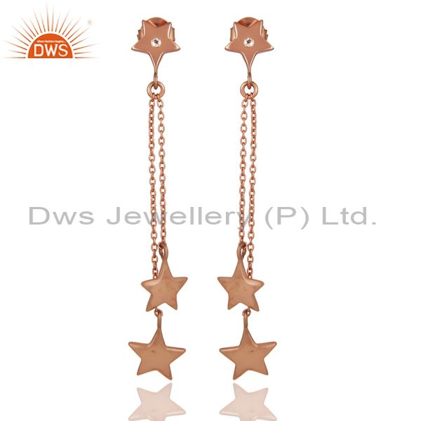925 Sterling Silver With Rose Gold Plated White Topaz Star Chain Dangle Earrings