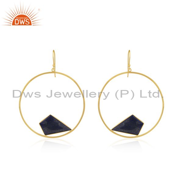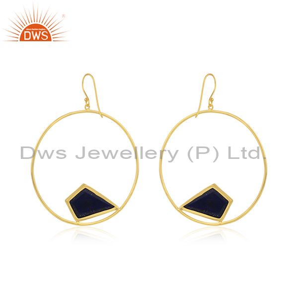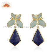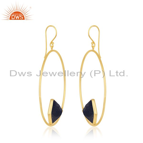 92.5 Sterling Silver Yellow Gold Plated Lapis Lazuli Gemstone Earring Wholesaler