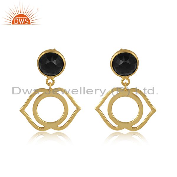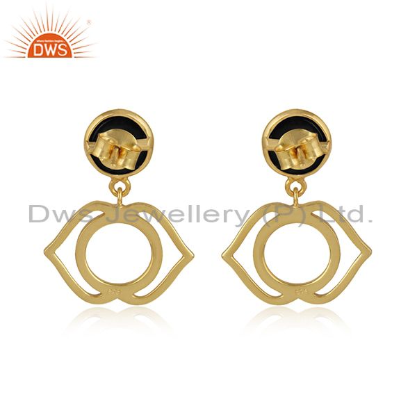 Ajna Chakra Earring in Yellow Gold on Silver 925 with Black Onyx