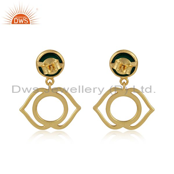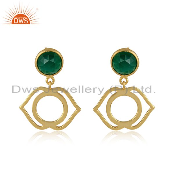 Ajna Chakra Earring in Yellow Gold on Silver 925 with Green Onyx