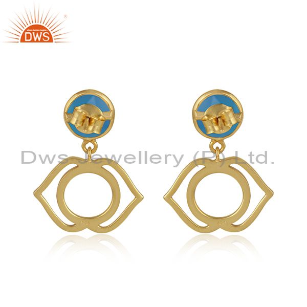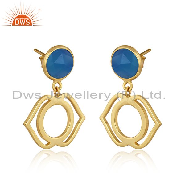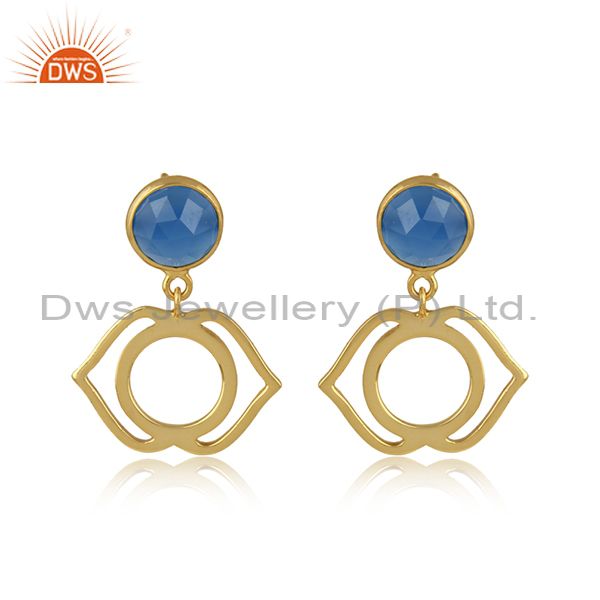 Ajna Earring in Yellow Gold on Silver 925 with Blue Chalcedony