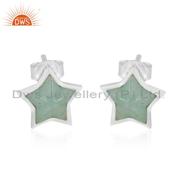 Amazonite Set Fine 925 Sterling Silver Star Shaped Earrings