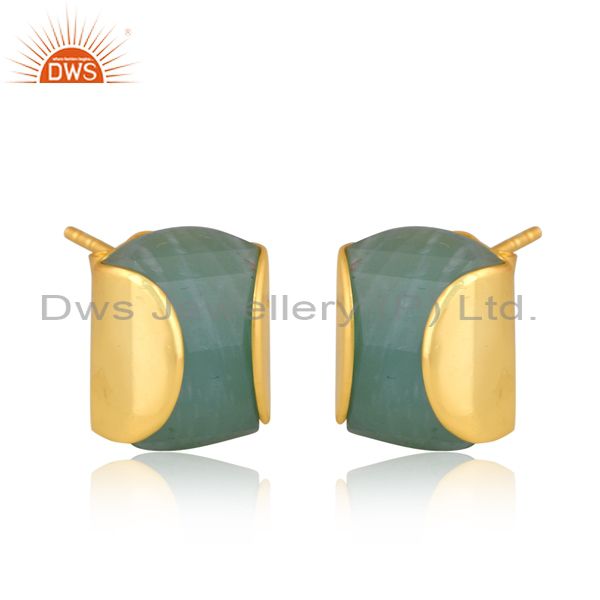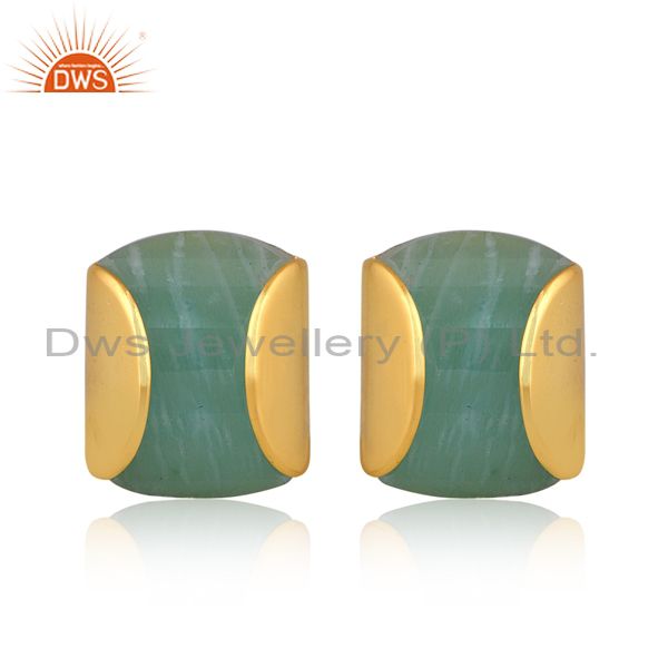 Amazonite Set Gold On 925 Silver Statement Abstract Earrings