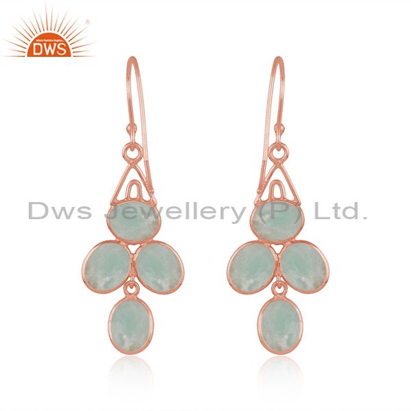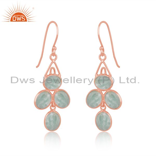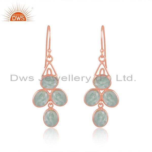 Amazonite Set Rose Gold On 925 Silver Designer Long Earrings