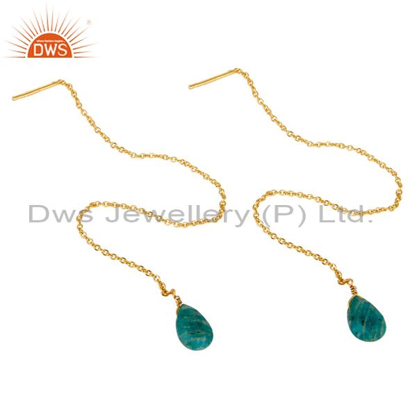 Amazonite Threaded Earring 14K Gold Plated 92.5 Sterling Silver Earring