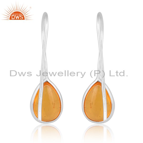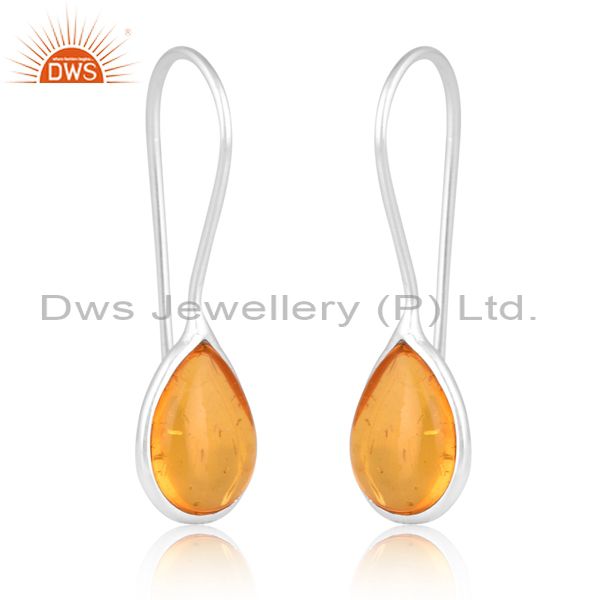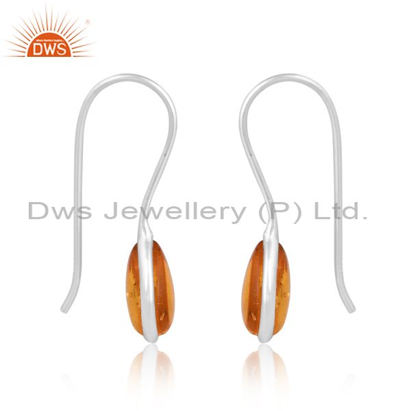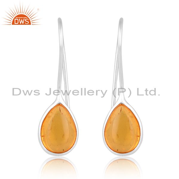 Amber Cultured Plain Briolette Pear Sterling Earring