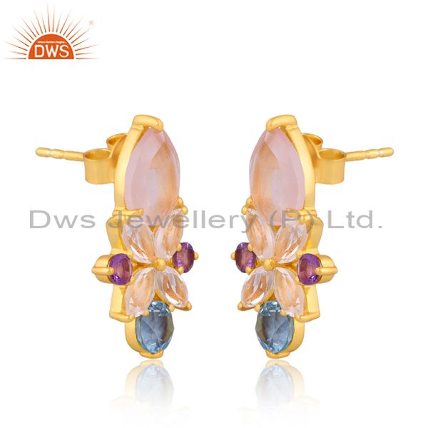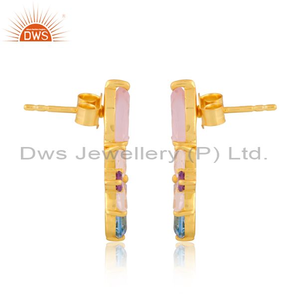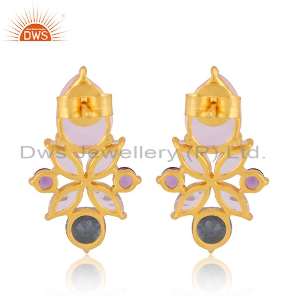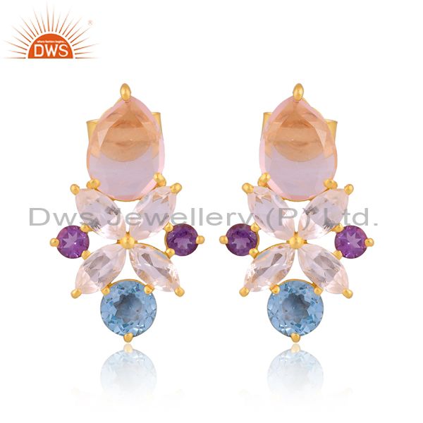 Amethyst And Blue Topaz Set Gold On Silver Fancy Earrings