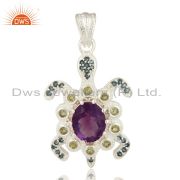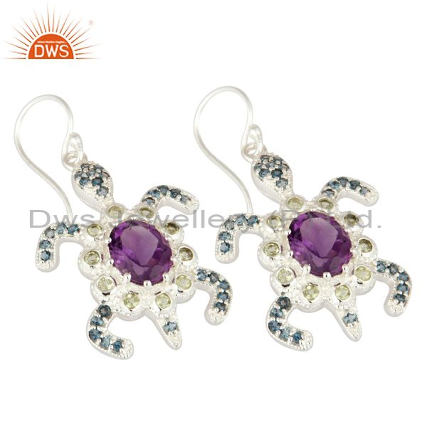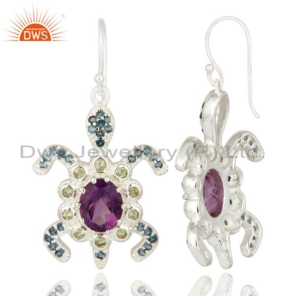 Amethyst And Blue Topaz Sterling Silver Turtle Designs Drop Earrings