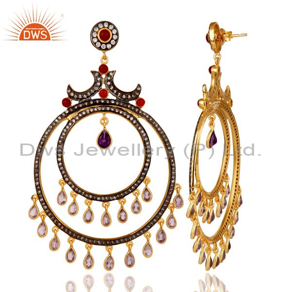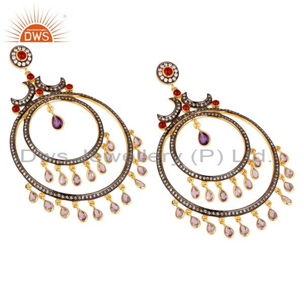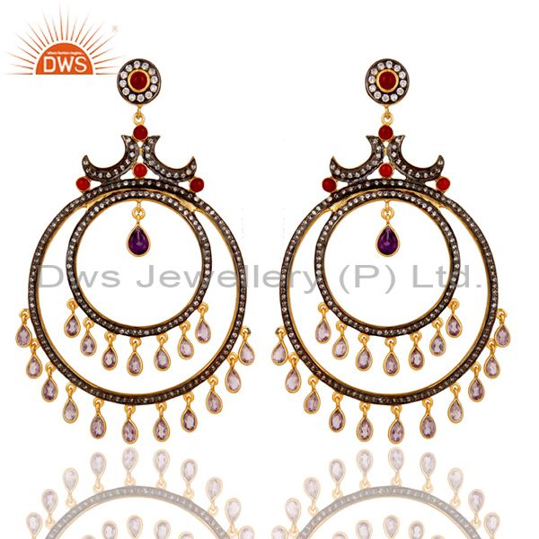 Amethyst and Red Onyx 18K Gold Plated Sterling Silver Traditional Stud Earring