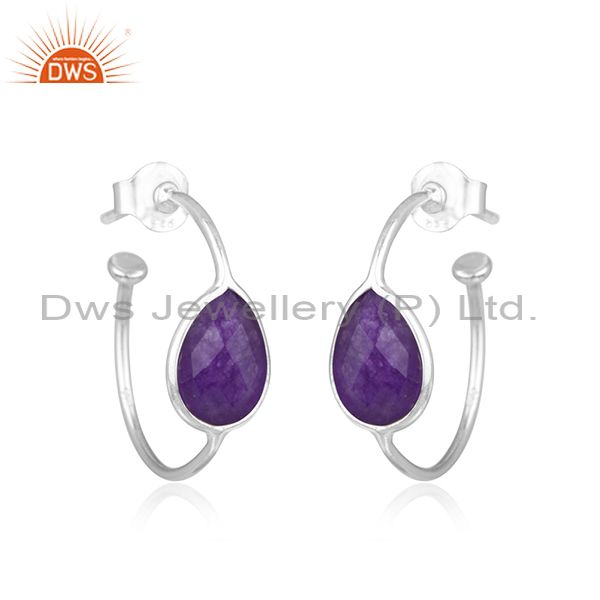 Amethyst Aventurine Gemstone Fine Sterling Silver Girls Hoop Earrings