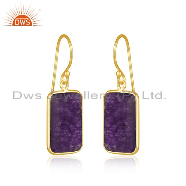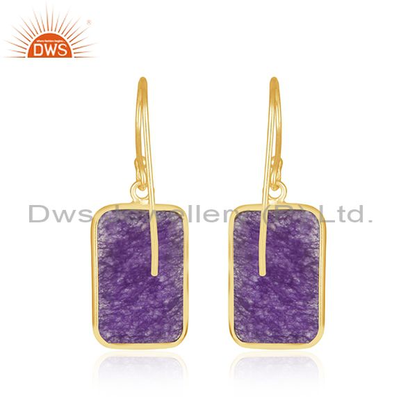 Amethyst Aventurine Gemstone Gold Plated 925 Silver Earrings Suppiler