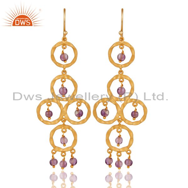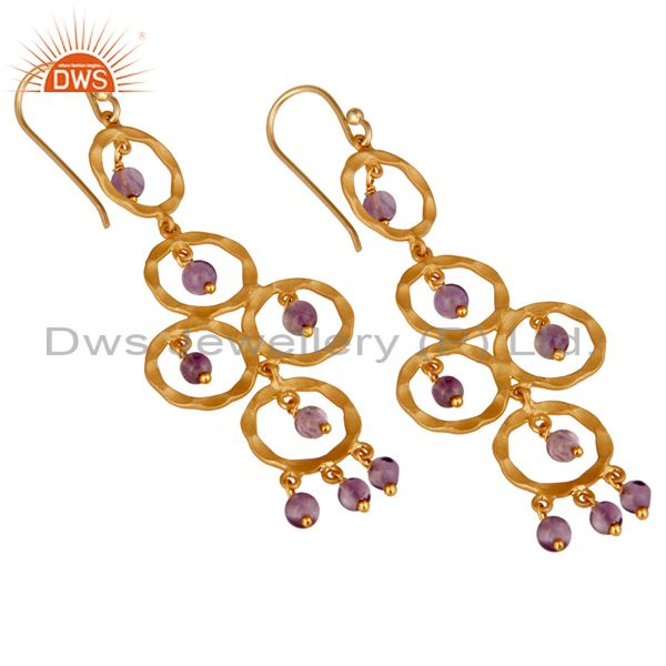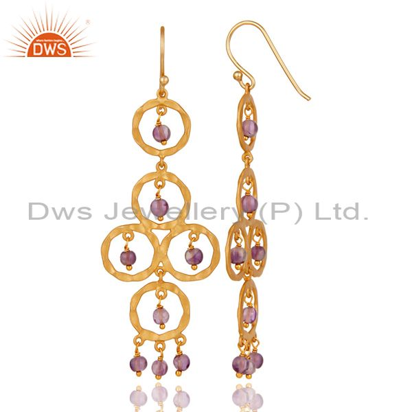 Amethyst Beaded 18K Gold Plated Sterling Silver Dangler Earring