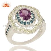 Amethyst, Blue Topaz And Peridot Gemstone Designer Earrings in Sterling Silver