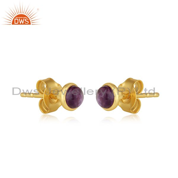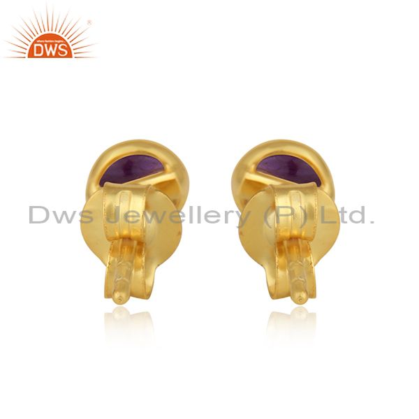 Amethyst Gemstone Designer 18K Gold Plated Silver Stud Earrings