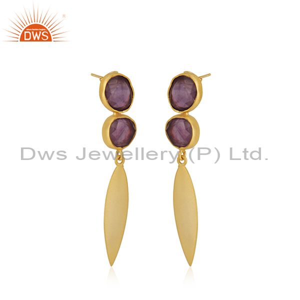 Amethyst Gemstone Yellow Gold Plated Brass Fashion Earrings Manufacturer India