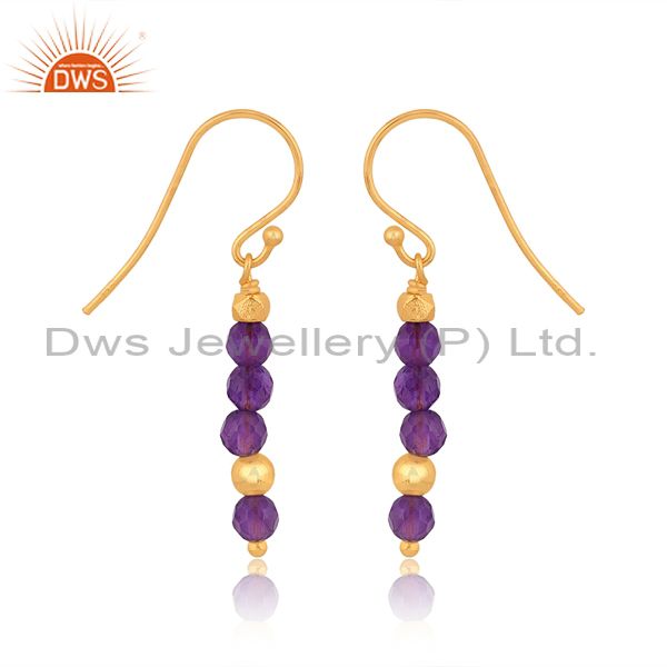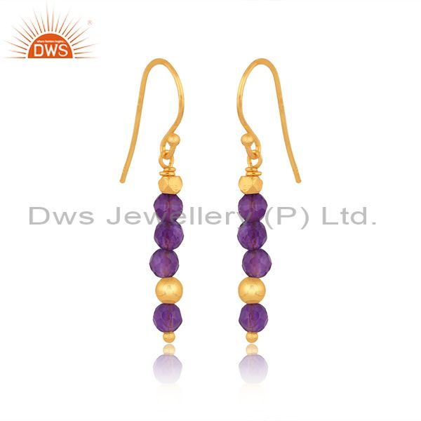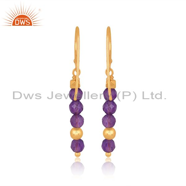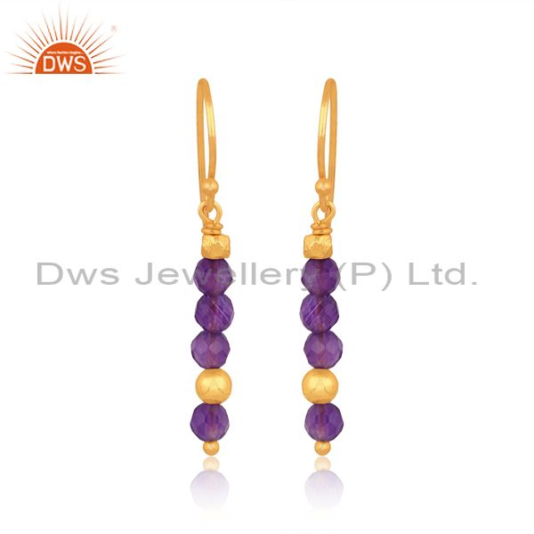 Amethyst Set Gold On Sterling Silver Long Earwire Earrings