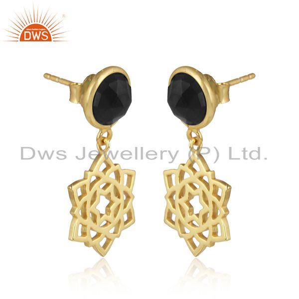 Anahata Earring In Yellow Gold On Silver 925 With Black Onyx