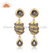 Antique 925 Sterling Silver Clear Crystal Quartz Designer Women Fashion Earring