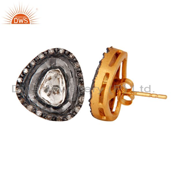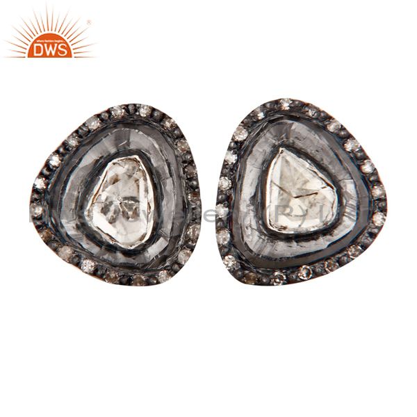 Antique Deco 18k Gold & 925 Silver Old Mine cut Antique Diamond Studs Earrings