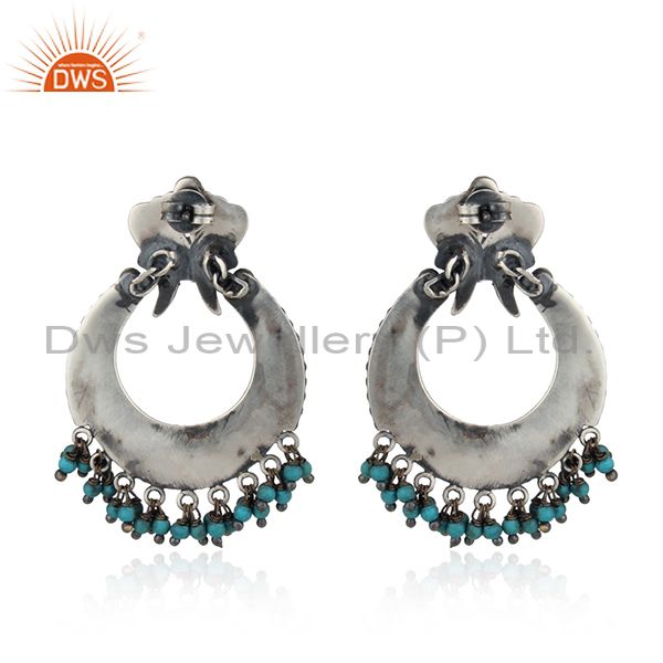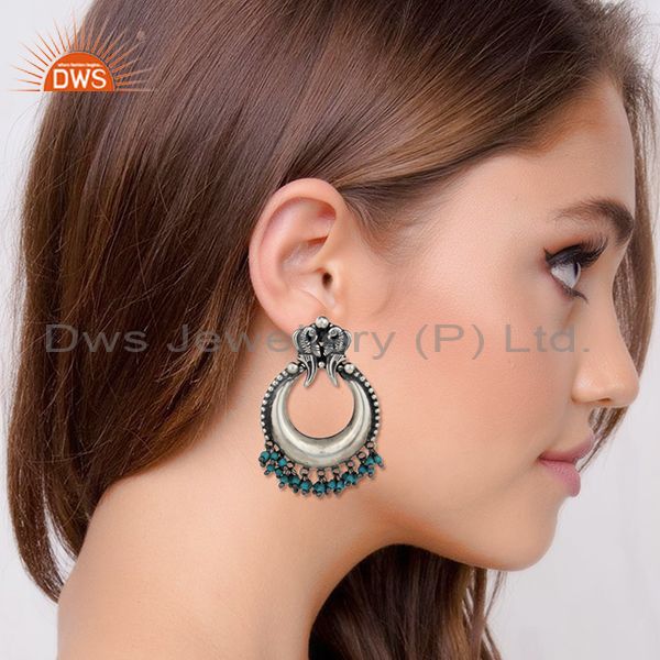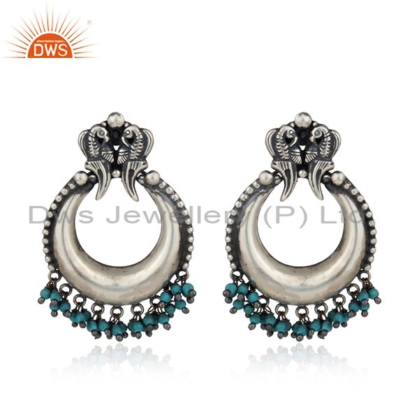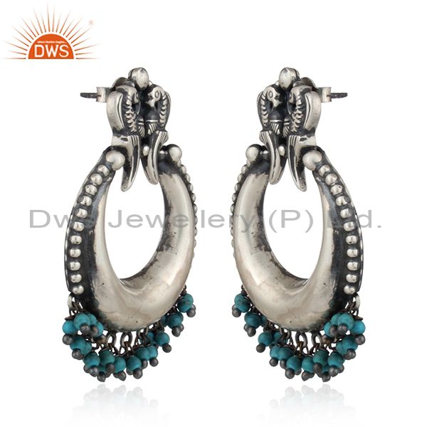 Antique Oxidized Peacock Design Turquoise Gemstone Silver Bali Earring
