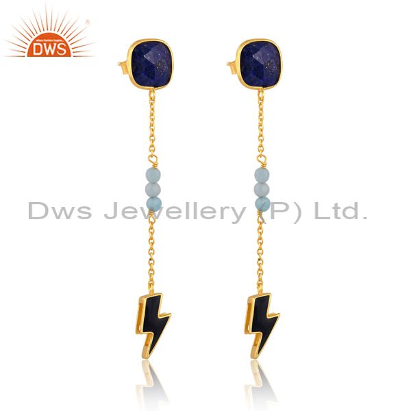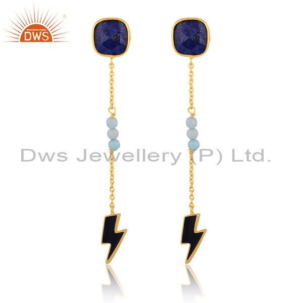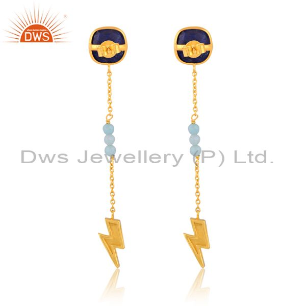 Aqua Chalcedony & Lapis Gold Plated Sterling Silver Earring